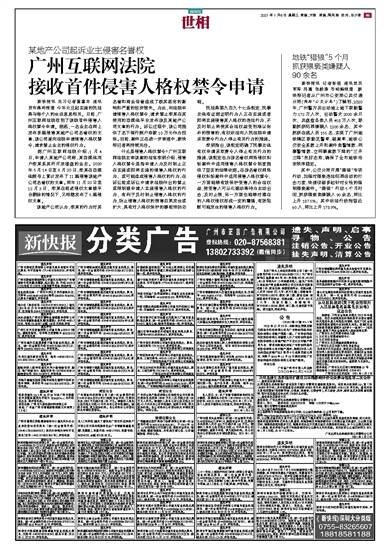 寻物、公告 020-87568381 登报热线: 注销公告、开业公告 13802733392 (微信同步) 分类广告 挂失声明、清算公告 《新快报》深圳大分类版
