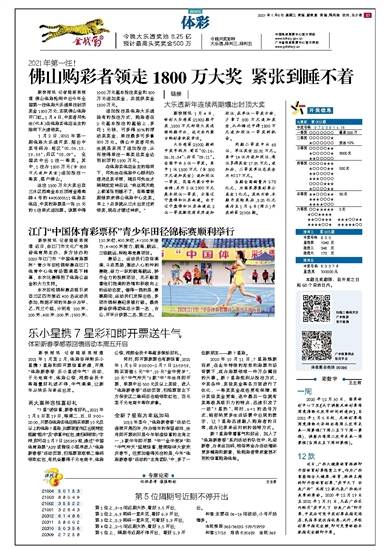2021年1月6日 星期三 责编:曾贵真 美编:陈凤翔 校对:马少俊 中国体育彩票中心官方网站 www.lottery.gov.cn 广东省体育彩票中心官方网站 www.gdl