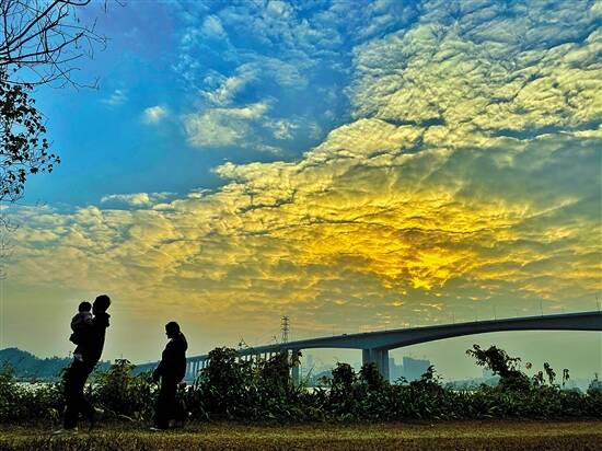 ■广州昨日天气晴好,在大学城一江边公园,不少市民前来散步,享受暖阳。受冷空气影响,今起广州将大幅降温,天气转阴冷。新快报记者 夏世焱/摄
