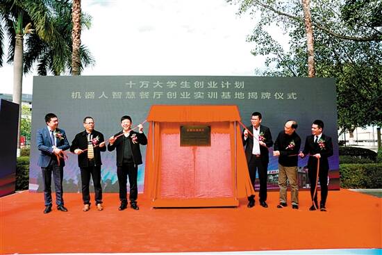 ■“十万大学生创业计划”公益项目首个“机器人智慧餐厅创业实训基地”落地广东岭南职业技术学院。 |