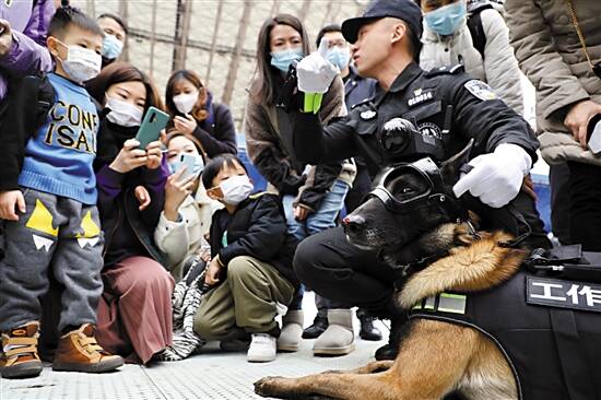 ■警犬受到小朋友们的欢迎。 孙毅/摄 |