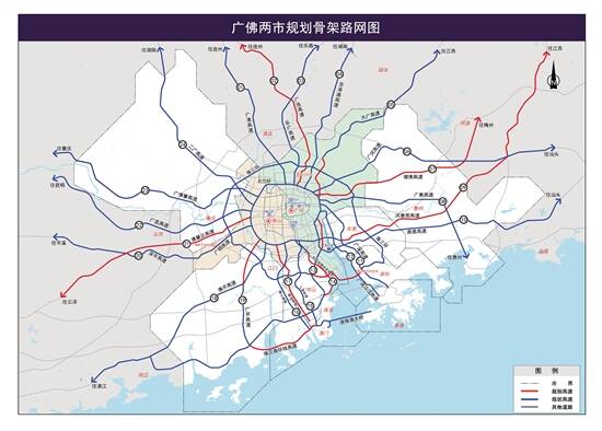 ■采写:新快报见习记者 陈慕媛 通讯员 穗规资宣 ■图片:通讯员提供 广佛同城,交通先行。1月11日,广州市规划和自然资源局召开《广佛两市道路衔接规划修编》新闻通气会,透露新一轮规划沿广佛两地197公里接壤边界共规划布局了80条衔接道路,未来将实现广佛两市中心区30分钟互达、重点地区与主要枢纽60分钟通达,同时保障广佛中心城区2小时快速通达湾区主要城市,推动了广佛道路基础设施全面互联和深度融合,为实现广佛全域同城化奠基。未来两市将有27条轨道交通串联,其中18条为城市轨道。 现状 现已建成衔接道路28条 广佛两市接壤边界197公里,中心城区直线距离仅约20公里,同城化发展区位优势明显。据规划,现已建成衔接道路28条,在建6条,建成通道较2006年增长了一倍。 目前广佛都市圈基本形成。数据显示广佛双向通勤特征明显。2019年广佛之间联系客流176万人次/日,比2005年增长了2.8倍,占广州对外出行的44%,占佛山对外出行的56%,广佛之间联系客流在湾区城市中比重最大。广州至佛山客流量接近广州中心四区至番禺区、至白云区客流规模。广佛之间通勤客流占全日客流比例由2005年的18.4%提高到2019年的40.8%,与广州市区出行通勤占比相当。通勤总人口达到34万,住广州就业佛山约占40%,住佛山就业广州占60%。 但广佛之间的交通状况仍需改善。广佛之间高速公路(广佛高速-北环高速、沙贝立交、广清高速、北二环高速等)呈现常态化拥堵,广佛中心城区连接道路(龙溪大道、广佛新干线等)拥堵点较多,平均饱和度达0.89。规划实施13年来,相对于2006年版规划通道总数建成率为51%。其中高速公路建成率达到80%,但城市道路建设相对缓慢,建成率为45%。 规划 布局80条衔接道路 为推进广佛全域同城化和“1+4”广佛高质量发展融合试验区建设,本次规划形成“两环二十四射十七联络”的广佛都市圈一体化骨干网络,沿197公里接壤边界共规划布局80条衔接道路,总数量较上一轮规划新增25条,并提出2020-2025年需要推进建设和加快前期研究的共建项目31项。 从空间分布来看,北部地区(华南路三期以北)共规划20条,加强花都与三水地区联系,推动新能源与智能网联汽车产业、生态文化旅游产业建设。中部地区(华南路三期-广明高速)共规划40条,加强广州南站-佛山三龙湾-广州荔湾海龙先导区,以及白云-南海、荔湾-南海试验区联系,改善金沙洲出行难及广佛通勤圈出行环境,推动共建湾区双向开放新高地。南部地区(广明高速以南)共规划20条,加强南沙与顺德联系,推动先进制造业和自贸区服务业发展。 从通道功能来看,高快速战略通道21条,城市生活性道路59条,形成中心直达、枢纽连通、边界缝合、共建共享的广佛一体化道路交通网络。 融合 广佛两市中心区30分钟互达 上一轮规划重点是将两市规划道路网在交界地区的错位、断头等现象拼合接顺,做到“接得上”。本次规划则是打造广佛全域同城路网,实现“接得好”。 规划形成以广佛为极点,24条直连湾区,辐射粤东粤西粤北地区放射通道,确保广佛中心区2小时内通达湾区主要城市的稳定性与可靠性。加强了广州白云机场与珠三角枢纽机场、深圳宝安机场快速联系,提供机场之间不少于2条高速公路连接,实现80分钟互达。 同时,加密了两市中心城区道路衔接40条,平均通道间距从现状3.3km缩减至1.3km,道路出行时间由现状约45分钟缩短至约30分钟。 规划补强了外围地区高快路,新增7条平行分流通道,使过境交通中穿越广佛中心城区的比例从现状57%减少到31%,缓解广佛高速沙贝路段、广清高速等跨市结构性交通拥堵,支撑广佛两市城市空间和产业融合发展。 此外,过去十余年广佛两市偏重高等级路网衔接建设,服务两市生活和通勤的地方道路建设较为滞后。本轮规划着重构建过境、通勤、产业运输、生活集散等多层级路网。其中,强化1+4广佛高质量发展融合试验区、金沙洲地区等重点同城区域内次级道路网融合,试验区内规划衔接道路60条,比现状增加2.75倍,金沙洲地区规划衔接通道数是现状的2.25倍。 聚焦 解决金沙洲出行难 缓解广佛快速通道拥堵 对于金沙洲出行难问题,广佛两市规划部门提出3项措施。一是增加出岛过江通道。从现状6条规划到15条,新增9条,其中广州方向从现状3条规划到8条,新增5条。包括碧江大桥、沉香大桥、大坦沙大桥、海北-大坦沙,同心桥,通道能力是现状2.6倍,满足未来金沙洲地区道路交通过江需求。二是加大地铁覆盖,快速通达广佛两市中心区。从现状的1条规划到4条,新增广州12号线、佛山5号线连接广州站、佛山6号线连接白云新城,使金沙洲地区对外出行地铁比例从现状37%提高到53%。三是打通断头路,加强岛内金沙洲与里水、海北联系,从现状7条规划贯通12条。 对于广佛快速通道的拥堵问题,规划通过新增花莞高速西延线、增佛高速、广佛肇高速、佛江高速北延线、佛清从高速、广明高速佛山段等平行通道,补强外围地区高快速路。未来穿越广佛中心城区的过境车流、货运车辆比例分别较现状减少46%、56%,预计沙贝立交交通量将下降17%,广清高速下降22%,鸦岗大道下降30%。 对于加强粤港澳大湾区枢纽机场群之间的互联互通问题,规划加强白云机场与珠三角枢纽机场、深圳宝安机场快速联系,确保机场之间至少2条高速通道连通,实现白云机场与珠三角枢纽机场、宝安机场之间通行时间控制在8