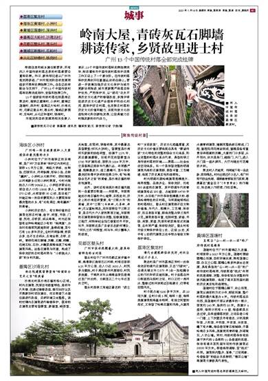 ●荔湾区聚龙村 ●海珠区黄埔村、小洲村 ●黄埔区莲塘村、深井村 ●番禺区大岭村、沙湾北村 ●花都区塱头村、港头村 ●增城区新围村、瓜岭村 ●从化区钟楼村、钱岗村 根据住