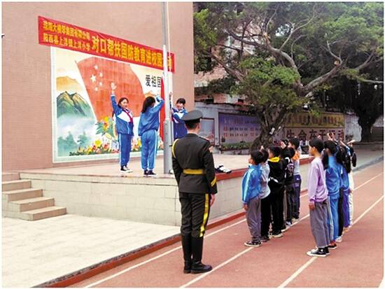 ·脱贫攻坚答卷 “扶贫扶志,国防教育进校园活动,目的是让我们对口帮扶村的学校与学生,懂得面对困难要迎难而上,树立起他们战胜困难、摆脱困境的信心和斗志,培养孩子们积极向上和坚韧不拔的思想观念,提振精神面貌——这就是这次活动的意义所在。”珠海市横琴新区驻广东省阳江市阳西县上洋镇菩提村第一书记兼扶贫工作队队长刘峰告诉新快报记者。 2021年1月5日至7日,由珠海大横琴集团有限公司策划执行的“国防教育进校园”活动“雏鹰计划”在阳西县上洋镇上洋小学和菩提小学举行,三天时间,7名优秀退役军人代表与近200名五、六年级的孩子们近距离互动,通过军事化训练的动作训练到规范化国旗手训练再到爱国主义教育,时间虽短,意义匪浅。 ■采写:新快报记者 陈斌 ■图片:受访者供图 三个半天,效果超预期 “三天时间,我们采取的是半天正常上课,半天进行军训的方式,上午在菩提村,下午在上洋村,军训的内容主要是军人队列军姿,规范化升国旗仪式以及爱国主义教育大课等。”刘峰回顾着三天的活动说道:“未来我希望国防教育进校园活动能常态化。” 让刘峰颇有感触的是,短短三天时间,从刚开始训练时学生们各种小动作不断的状况频出,到逐渐感受到严明纪律、一切行动听指挥的重要性,再到后来的令行禁止、如臂使指以及不畏艰难勇往直前的精神,“确实让我没想到。”他说。 再一个没想到的,是孩子们与军人之间建立起的良好互动情感,“三天时间一晃而过,临别时的不舍,让一些孩子还流了眼泪,一再问:‘你们什么时候还能再来呀?’我相信,这次国防教育进校园活动,作用远超我们当时的预期。” 大横琴集团有限公司借助集团退役军人和民兵队伍的优势,积极策划了这次国防教育、爱国主义教育进校园的活动,选派的辅导员都是集团内部优秀的退役军人,且全部参加过珠海带训教官岗前培训,可谓“阵容强大”,“集团非常重视这次活动,启动仪式当天,大横琴集团党委委员、纪委书记钟丽红,珠海市驻阳西县扶贫工作组组长钟柏超,上洋小学和菩提小学校领导,菩提村第一书记刘峰,还有我,都在现场参加了活动。”珠海市横琴新区驻广东省阳江市阳西县上洋镇上洋村第一书记兼扶贫工作队队长骆迅告诉新快报记者。 代际传承,教育源头斩穷根 菩提村原是省定贫困村,建档立卡贫困户78户148人2020年已全部达到脱贫标准,从2019年3月开始驻村的第一书记刘峰,谈起日常驻村工作时,对于“扶贫扶志”这四个字,感悟非常深。 “本来,在义务教育范围内学生入学是没有什么太大问题的,但辍学或厌学的情况却时有发生,我们平时的工作,教育帮扶是重点工作之一。”刘峰告诉新快报记者。 “我们村里有一家建档立卡贫困户家的小孩,上小学五年级的时候辍了学,家里学校都管不了,就是不愿意去学校。我知道这个事情之后,觉得必须要给他们做思想工作,不能让这孩子误入歧途。” 思想工作本就不容易做,何况还是个处在“叛逆期”的孩子,“开始我去找他,他都躲着,不愿意见我,闭门羹都吃了好几次。”然而刘峰没有放弃,苦口婆心地找他聊,用个人的经历打动他,“我跟他说,下次我带你去我们大横琴看看,让你看看外面的世界有多么精彩,但是你要回到学校上学。他还真听进去了。”刘峰找到当地学校的校长,希望能接收这个小孩入学,“后来学校给他办了入学手续,我在想,如果我没有去做这件事情,可能会影响孩子的一生。” “大横琴集团党委委员、纪委书记钟丽红在这次活动的动员讲话中提到过,通过国防教育和军事训练进校园的举动,形成纪律严明的校园文化氛围,我想,这对这些孩子今后的学习和生活,甚至未来走向社会,都会产生深远的影响。”刘峰说。