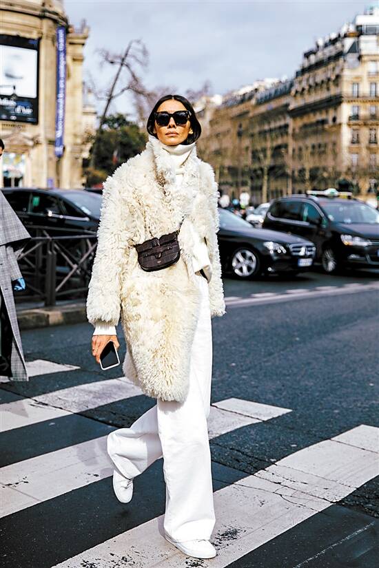 ▲ 拼接毛绒已经足够抢眼,因此身上其他单品最好选择同一色系,这样搭配起来整体清爽,更容易把控。 |