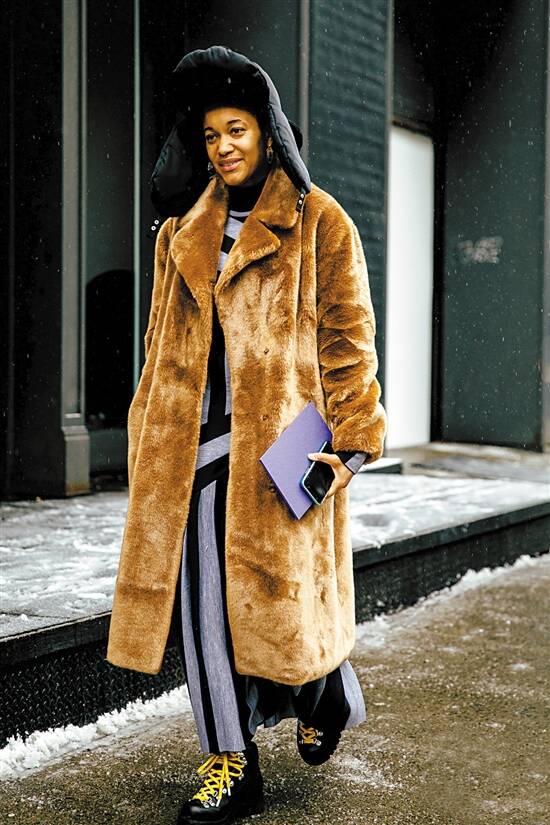 ▲ 长款的毛绒外套温暖感加倍,但长度最长不要超过小腿肚位置,否则会显得过于厚重,在南方的冬天尤其显得突兀。 |