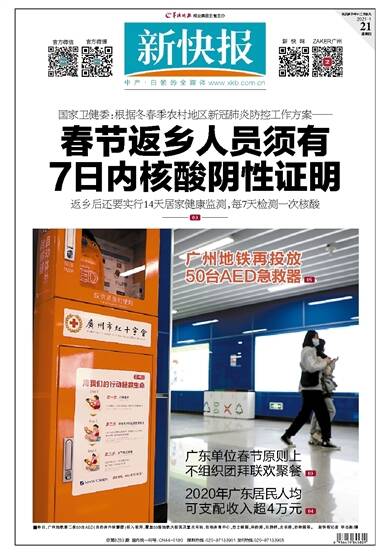 春节返乡人员须有 7日内核酸阴性证明