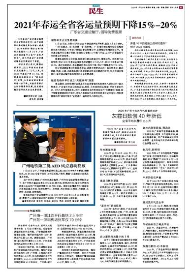 “2020年广东省十大天气气候事件”结果出炉,刚刚过去的年末寒潮入选,另外还有高温天数创新高和灰霾天数创新低。 ■新快报记者 许力夫 年末寒潮来袭 2020年12月29日-2021年1