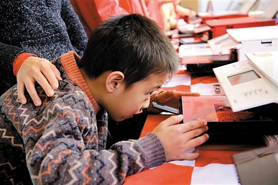 ■一位小朋友目不转睛地看着相片慢慢打印出来,心里充满了期待。 |