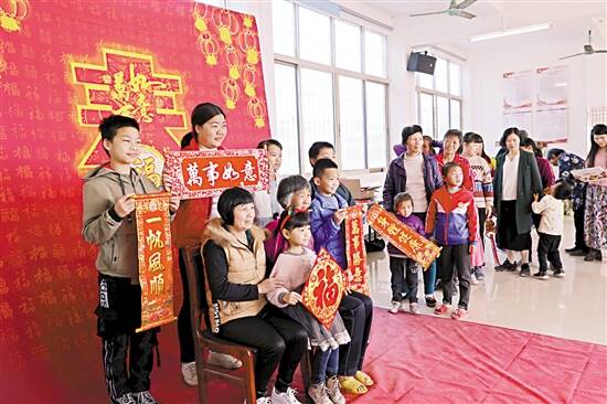 ■活动最后,村民们拿着“幸福大片”和春联与志愿者、嘉宾一起在村委会门口留下了一张大合影。 |