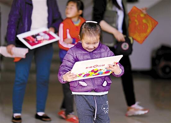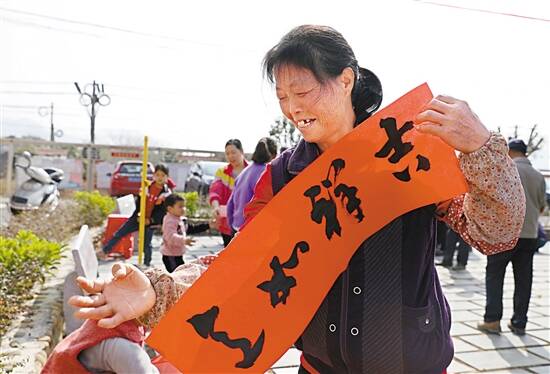 ■刚刚拿到春联的村民兴奋不已。 |