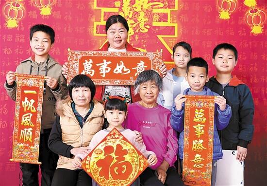 ■采写:新快报记者 夏世焱 ■摄影:新快报记者 陈昆仑 夏世焱 龚吉林 2021年1月23日,由广东新快报社发起,联合广东省摄影家协会,佳能(中国)有限公司广州分公司等单位共同参与的“我们的中国梦——广东红色文艺轻骑兵下基层送幸福大片”摄影公益活动走进英德市大站镇大塘村,为这里的村民免费拍摄制作全家福、书写春联和“福”字,并为困难家庭送去新春慰问品。此次活动共送出“福”字和春联300多份,幸福大片200多幅。 “送幸福大片”是新快报影像公益活动,也是新快报每年新春走基层、联系群众的重要形式,到今年已经连续举办了11年。其足迹遍布广东各地市的农村和社区,送出“新春全家福”5000多幅。同时促成了河源连南当地小学改造,中山大茅岛医院老人房屋修葺等多项扶贫帮扶项目。 当天,羊城晚报报业集团管委会委员、新快报社社长、总编辑许志权,广东省摄影家协会主席李洁军, 广东省摄影家协会秘书长陈益刚,广州市摄影家协会副主席庞薇,佳能(中国)有限公司副总裁、华南区域总部首席代表中岛浩司,佳能(中国)有限公司广州分公司副总经理张紫霓以及清远市摄影协会和广州青年书法协会的书法家们出席了活动。 羊城晚报报业集团管委会委员、新快报社社长、总编辑许志权表示:“2020年是一个特殊的年份。首先,2020年是脱贫攻坚的决战决胜之年,前两年我们送幸福大片活动去到了清远的连樟村,今年我们又来到了大塘村。我们看到经过政策的帮扶,产业的带动,人民的生活发生了很大的改变。村容村貌焕然一新,人民真正地过上了幸福的生活。再加上经历了新冠疫情这样特殊的时期,让老百姓更加懂得幸福生活的来之不易。这也让我们今年的送幸福大片活动显得更有意义。” 广东省摄影家协会秘书长陈益刚表示:“广东省摄影家协会通过组织协会会员参加这样的送摄影公益活动,除了希望摄影师能够通过镜头记录我们脱贫攻坚所取得的巨大成就,见证历史,也希望能够给基层的老百姓送去一些实实在在的实惠和欢乐。未来我们也将组织和参与更多的摄影公益活动,助力乡村振兴,文化振兴。” 现场 “我是第一个呢,我想要一副春联!” “我是第一个呢,我想要一副春联!”听说今天村里有免费拍全家福和送春联的活动,张贵芬早早地就带着三岁多的孙女和一岁的孙子来到村委会门口。看着两位书法家把所有的东西准备好,张贵芬乐呵呵地凑了上去。与此同时,几个摄影志愿者正在一楼的会议室里搭建拍摄全家福的摄影棚——几盏专业的摄影灯,一块三米多高的红色背景布,中间还有一个大大的“春”字。当背景布被高高地撑起来的瞬间,现场一下子充满了喜庆的气氛。 不一会的工夫,村委会便聚集了不少的村民。“三天前我们就已经在村委的微信公众号上发布今天活动的信息了。”中共广东省委政法委驻大塘村第一书记罗卫东一边帮着维持现场的秩序,一边笑着说,“怕大家没有看到消息,今早八点多我们又在广播里通知了两遍。” 大塘村位于北江与滃江交汇处的冲积平原上,面积3.9平方公里,下辖19个自然村,共780户3520人。作为广东省委政法委对口帮扶的省定贫困村,几年的时间,扶贫工作队在基础设施、产业发展、教育以及平安法治村创建等方面开展全面帮扶。2019年底,全村74户贫困户均达脱贫标准并退出贫困,大塘村也从省级贫困村出列。2020年大塘村在抓好防疫和抗击洪灾的情况下,村集体收入达到11.55万元,全村人均收入提高到28132元,其中有劳动能力的贫困户人均收入达到24522元。 “这两年我们真真切切地感受到了村民生活的变化。老百姓生活好了,脸上的笑容也灿烂了。”罗卫东笑着说。 “我们家十一口人全部到了!” “来来来,大家排好队,面对镜头的时候尽量自然一点!”为了找最好的角度,摄影师潘赣明双手举着相机,双腿蹲成了一个马步。站在他身后的另一位摄影师庞薇也临时充当起了动作指导。为了调动气氛,她使出了十八般武艺,摆出了各种搞怪的动作,不仅把被摄者给逗乐了,在一旁排队等候的村民也被逗得咧嘴笑。 “哇,好神奇,相片这么快就出来了!”来自佳能公司的几个志愿者正在忙着用打印机将刚刚拍摄的相片进行现场打印并细心装裱。六岁的成杰看着相片一点点地打印出来,歪着脑子,眼睛睁得大大的。站在一旁的父亲成小龙脸上也充满了期待:“我们已经很久没有拍过这么正式的全家福了!上一次应该还是他刚满月的时候。”听说今天有拍摄活动,成小龙一家人早早地就起来准备,各自换上了崭新的衣服。出门的时候,他的老婆还特意给三岁的女儿梳了一个小辫,别上了一个红色的发卡,看起来十分地喜庆。 “我们家十一口人都到了!”“85后”的村民吴国梁拿到刚刚打印出来的相片时兴奋不已。相片上父母、两个妹妹、老婆和孩子们加起来一共11人。一家人手上拿着红色的春联和“福”字,脸上堆满了幸福的欢笑。吴国梁说自己以前在广州打工,平时很少有机会回来跟家人团聚。这两年村里兴起了很多产业,包括蔬菜基地,特色养殖等,现在自己在家门口就能够把钱挣了,还能方便照顾老人和孩子,于是他选择留了下来。目前他在村委会负责宣传工作,还帮村里做起了微信公众号。 最美的“全家福” 当天上午10点半,随着第一批领到相片和春联的村民满心欢喜地把“礼品”带回家,左邻右舍的村民也