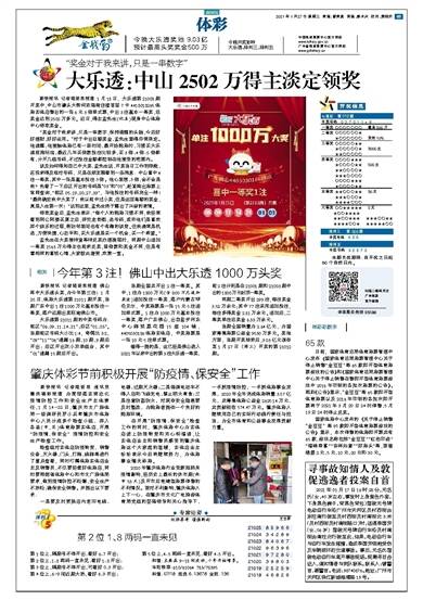 新快报讯 记者陆妍思报道 佛山再中大乐透头奖,为今年第三注!1月25日,体彩大乐透第21011期开奖,当期广东中出1注1000万元基本投注一等奖,落户近期出奖旺地佛山市。 大乐透第21011期