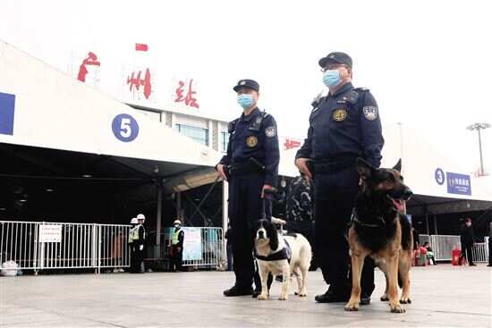 新快报讯 记者林钢威 通讯员邱礼宏 江曦报道 2021年广州地区春运于1月28日正式拉开帷幕,广州警方全力投入到春运安保工作第一线。春运期间,广州警方常态化部署春运安保力量2.2万余人(含武警、边防、学警、保安等安保力量),全力保障2021年广州地区春运平安有序。截至28日16时30分,广州火车站、火车东站、火车南站、火车北站和各汽车客运站场的治安和周边交通秩序良好。 春运开始后,公交警方每日常态化部署春运安保警力2300余人次,加强春运高峰期秩序维护。在地铁广州火车站、广州南站、广州东站等重要站点,还加派特警及警犬加强巡守。目前,共累计出动特警200余人次、警犬140余头次,检查各类箱包物品56200余件,查获有毒危险品900ml,管制刀具2把。