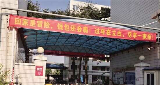 ■立白集团生产基地贴出大红横幅,倡议员工留下过年。 |