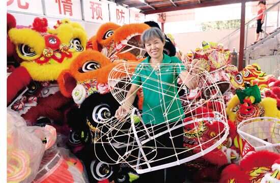 ■林寨镇楼镇村贫困户黄大姐正在忙着扎狮头。 |