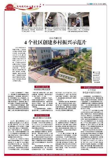 汕头市濠江区 2019年度全省乡村振兴考核,广东省汕头市濠江区取得了粤东片区第一名的好成绩;2020年10月,濠江区玉石等四个社区创建乡村振兴示范片项目公开招标;2020年11月底,广东省