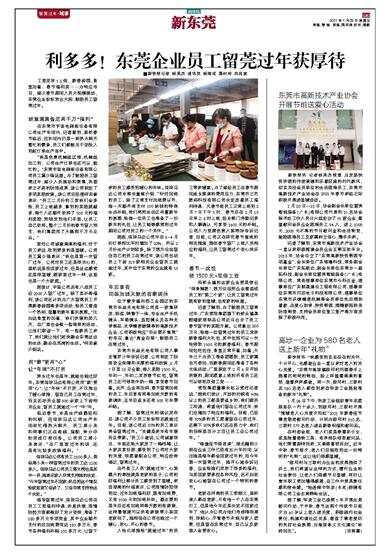 ■新快报记者 杨英杰 通讯员 杨绪成 莫衬玲 凤岗宣 工资发放1.2倍、新春游园、食堂加餐、春节福利奖……为响应号召,减少春节期间人员大规模流动,东莞企业纷纷放出大招,鼓励员工留莞过年。
