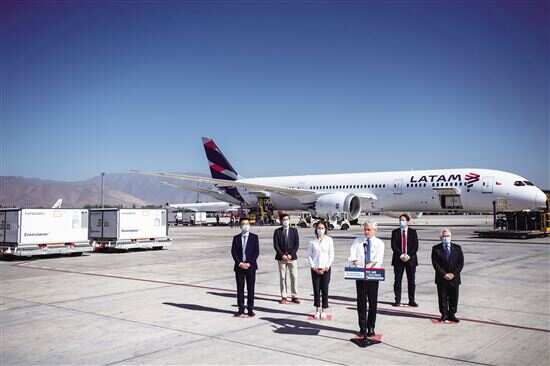 ■首批近200万剂由中国科兴公司生产的新冠疫苗当地时间28日运抵智利首都圣地亚哥。智利总统皮涅拉、卫生部长帕里斯和中国驻智利大使馆临时代办周仪前往机场迎接。新华社发