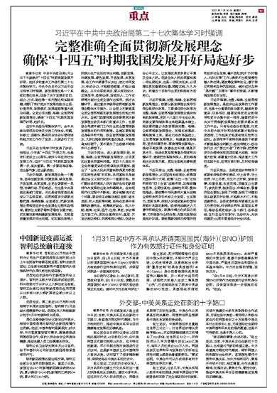 习近平在中共中央政治局第二十七次集体学习时强调 据新华社电 中共中央政治局1月28日下午就做好“十四五”时期我国发展开好局、起好步的重点工作进行第二十七次集体学习。中共中央总书记习近平在主