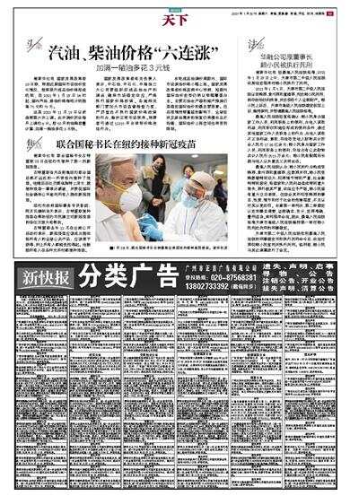 加满一箱油多花3元钱 据新华社电 国家发展改革委29日称,根据近期国际市场油价变化情况,按照现行成品油价格形成机制,自2021年1月29日24时起,国内汽油、柴油价格每吨分别提高75元和7