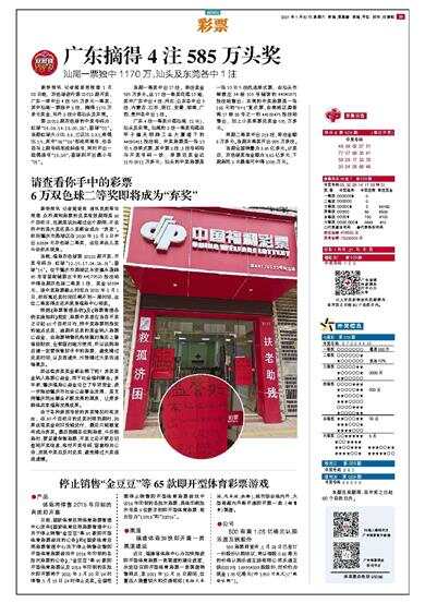 停止销售“金豆豆”等65款即开型体育彩票游戏