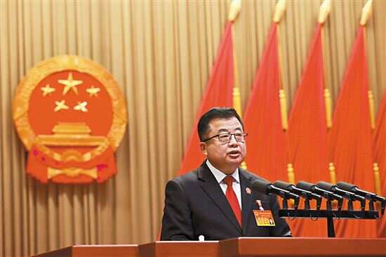 ■广州市中级人民法院院长王勇作人民法院工作报告。羊城晚报记者 陶奕燃/摄 |