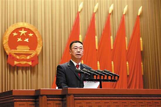 ■广州市人民检察院检察长欧名宇作人民检察院工作报告。羊城晚报记者 陶奕燃/摄 |