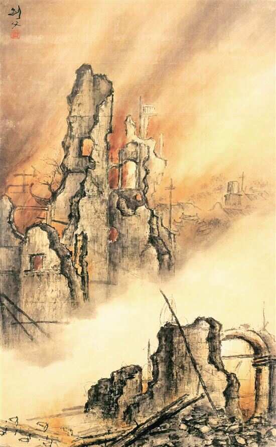 高剑父中国画 东战场的烈焰 (广州艺博院提供) |