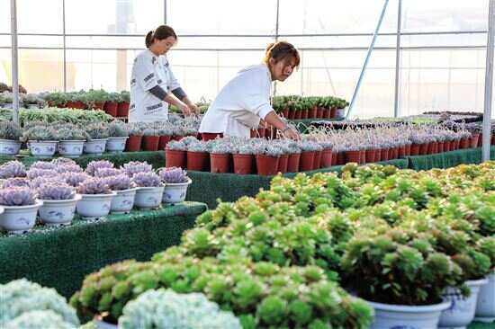 ■生机盎然的多肉小盆栽装点了石底村的绿色产业,首批产品入市就供不应求。 |