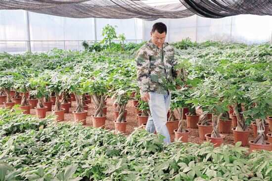 【开篇语】 峥嵘岁月,不听天不由命的云安人,凭一双手一股力,开山劈石,改变“苦旱”之地缺粮的过去,书就人类水利建造史上的奇迹。 这双谋变求新的“手”,是几十万云安人的众志成城;这股向上而生的“力”,是响应党和政府号召,在千难万险前的无所畏惧。 山河如故,信念如初。 脱贫攻坚,云安奋力而行。 肉牛养殖、盆栽培育、花卉基地、百亿产业园……昔日荒山僻野,而今生机盎然。 乡村振兴,云安全力以赴。 臭泥塘变靓广场、荒草地建小公园……美丽村庄里,老有所养幼有所依,邻里守望,怡然耕读,同赴小康。 今日云安,“村美、业兴、家富、人和”,指日可期。 以五个“百亩基地”的大拼图,实现“一园带百村千户万人”的精准扶贫“云安模式”。“发财树下发大财,绿色产业有希望”,云浮市云安区白石镇石底村用3年时间答好了市委常委、云安区委书记李军晓的脱贫答卷。在2020年初冬,石底村迎来又一个丰产季,一车车从种植基地运来的发财树运抵加工大棚。 “从种植基地挖出,送来加工厂定型养育,再卖出去。”正在锯树干的周启超说。 攻坚四载,石底村借力脱贫东风成功打造特色种植业集群,以绿色经济为引擎,先后引入发财树和多肉盆栽脱贫双“IP”,将昔日“苦旱”之地逆转为脱贫致富网红村。 脱贫IP1:发财树 贫困户变身“园林主” 石底村村如其名,山多田少,偏僻干旱,周启超家里种了几亩稻谷和果蔬,但家庭耕种难成规模,偶遇丰年,也无“变现”路径。2016年,云浮市人民政府办公室定点帮扶石底村,工作队精研细判,利用当地阳光充沛、土地富含微量元素的自然禀赋,与云浮市绿趣农林科技公司合作引入发财树种植,以“公司+合作社+基地+农户(有劳动力的贫困户)”的模式,按照“村委租地、社司合作、农户领管、收益共享”的理念,与愿意从事种植发财树的贫困户签订合同,引导贫困户与周边的桔农适时转型种植绿化树和盆栽发财树,均由绿趣公司负责提供优质种苗,全程技术管理跟踪服务,产品回收按公司签订合同执行,实行“产、供、销”一条龙服务,实现了由“救济式”扶贫到“开发式”扶贫的转变。 周启超和村里另外46户有劳动力的贫困户与合作公司签订协议,每家栽下4000多株幼苗,一下成为“园林主”。2019年,公司延长产业链,在石底村再建深加工大棚,勤劳肯干的周启超被聘为管理人员,“自己种树有收入,在加工大棚上班有工资,咱村的发财树,还真给我种下发财梦。”他笑着说,返乡两年,眼见筷子粗细的发财树长到碗口粗,他干劲十足,计划扩种。 种植发财树的不仅仅是石底村。云安区新创“鲜花进村、鲜花围户”新模式,紧抓建设省级花卉苗木产业园的契机,鼓励群众在房前屋后清理出来的空地种植花卉苗木,由企业保底回收,全周期、全链条参与精美农村建设,探索“见缝插绿”新途径。通过“公司+村委+农户”模式,由公司负责种植发财树1500多亩,村委、农户共同管理,所得收益扣除成本后,按公司占20%、村委占30%、农户占50%的比例分成。破解清拆后闲置地荒废的难题,逐步实现“拆出安全、拆出美丽、拆出空间、拆出经济”的战略,为建设生态宜居美丽乡村奠定基础。 2332个农村“四小园”,1500多亩发财树像花蝴蝶一样飞舞在云安区的村头巷尾、路口田间,村庄“颜值”大幅提升,群众生活越来越惬意。 脱贫IP2:多肉盆栽 充盈美景“备战”乡旅 云浮市政府办公室驻石底村第一书记李锋告诉记者,除了村里的贫困家庭,这两年诸多农户也看好发财树产业,纷纷载下新苗,石底村已形成苗种繁育、规模种植、加工、物流、销售等于一体的全产业链。 “扶贫产业基地有接近300亩,但全村的种植规模已经达到7000亩。”他说,2020年正是发财树高产期,管理得当的“园林主”收益颇丰,首批采收获利两三万元的贫困户大有人在。此外,发财树的种植还为当地村民提供了土地出租金收益保障。 发财树并非石底村一枝独秀的扶贫产业。在2019年建成的石底村多肉种植基地,李锋的手臂绕了一大圈,“你们看,5个大棚,现在有几百个品种,2021年会达到上千种。”他神采奕奕,在五彩缤纷的多肉植物中穿行,“这里不仅是种植基地,还是旅游达人的打卡胜地,发财树和多肉植物,现在是振兴石底村的新IP。” 显而易见,优选附加值高的苗木产业着力打造发财树和多肉种植基地,已成为石底村因地制宜,解决贫困的有力举措。李锋说:“多肉小盆栽市场需求很大,我们的基地还在扩建。你看,这样修过去,很快就能和蔬菜种植基地连为一体。” 蔬菜基地也是一派生机。几位农妇散开在田垄上,有人弯腰摘菜,有人举锄松土。看到李锋走近,她们都停下手中的活儿笑着打招呼,“李书记,龙须菜可以摘了,这几天的游客要带过来呀!” 在已建成7000亩发财树基地、120(亩)苗木深加工基地、380亩蔬菜基地及140亩牛大力基地的基础上,石底村2021年还将扩建300亩多肉种植基地,“从4个‘百亩基地’增加到5个,村庄面貌会更美丽。”李锋笑着说。 五位一体:绿色产业带动乡旅 多肉基地的入驻,是石底村借云安区获颁省级农业产业园的顺势而为,也是扶贫工作队精研细判,对原以“乡旅”为开发目标的农业企业,进行的一次方向微调。“野原公司去年来石底,但当时发展乡村旅游的时机还不成熟,我们建议这家企业抓住商机,先从花卉种植做起,联动另外4个‘百亩基地’为农旅