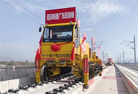 通车后赣州至深圳通行时间仅需两小时 新快报讯 记者许力夫 通讯员卢建建 马立报道 2月1日上午,随着一组500米长轨缓缓铺入赣(州)深(圳)高铁汕湛高速特大桥无砟轨道板上,标志着赣深高铁广东段正式开始铺轨。 赣深高铁是京九客运专线的最南段部分,是国内“八纵八横”高速铁路网的重要组成部分,线路全长436.37公里,设计时速350公里。其中,中铁四局承担赣深高铁广东段双线共计704.9公里铺轨任务,其中无砟轨道铺设604.5公里,有砟轨道铺设100.4公里。 “我们投入国内先进的铁路有砟、无砟轨道铺设一体式牵引车,可实现有砟和无砟牵引模式的自由切换,方便、快捷地完成区间线路和站内线路相结合的铺轨作业,全面提高铺轨作业效率,确保施工节点工期。” 中铁四局赣深铁路5标铺架分部项目经理王锴介绍到。 为了提高施工安全和效率,深圳工程建设指挥部采用工程线调度指挥系统,对现场的行车调度进行全方位、立体化的管理,有效应对工程线管理区间长、多单位交叉作业等复杂工况,在确保工程线行车安全的同时,大大提高了行车调度效率。中铁四局赣深铁路5标工程指挥部指挥长陈长满讲道:“按照总工期的要求,我们每天铺轨进度在6公里左右,预计5月底完成全线700多公里的铺轨任务,为后期联调联试及开通奠定坚实的基础。” 赣深高铁预计于2021年年底建成通车,届时,赣州至深圳的通行时间将由现在的7小时缩短至2小时,对推动粤港澳大湾区的深度融合、发挥珠三角地区辐射带动作用、落实国家“中部崛起计划”“赣闽粤原中央苏区振兴发展规划”战略意义重大。