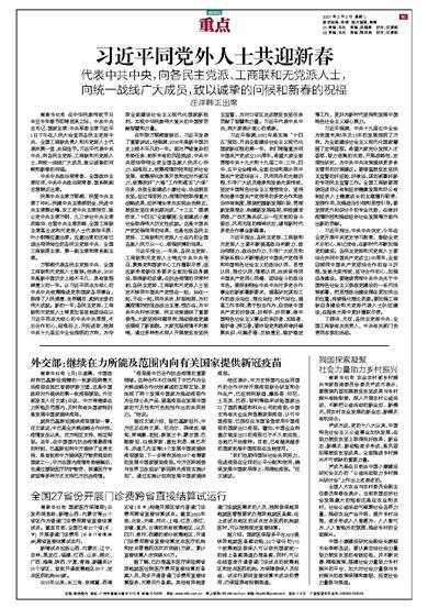 代表中共中央,向各民主党派、工商联和无党派人士,向统一战线广大成员,致以诚挚的问候和新春的祝福 汪洋韩正出席 据新华社电 在中华民族传统节日辛丑牛年春节即将到来之际,中共中央总书记、