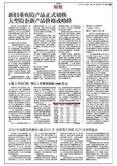 2020年健康险保费收入超8000亿 长期医疗险成2021年发展重点