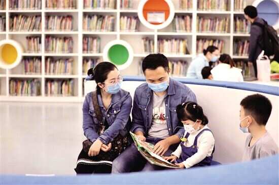 ■亲子阅读的场景在广图随处可见。 新快报记者 夏世焱/摄 |