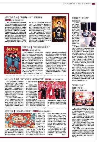 浙江卫视春晚 “笑赢这一年” 喜剧春晚 播出时间 2月10日大年廿九 浙江卫视和优酷联合举办的喜剧春晚集合相声、小品、脱口秀等各种艺术形式,表演嘉宾既有常年在央视春晚登台的喜剧老将,