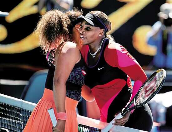 ■2月18日,大坂直美(左)和塞雷娜·威廉姆斯在比赛后致意。新华社发 |