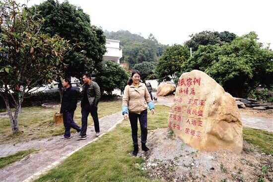 ■大旺村的小公园里, 一个个姓氏的家训被刻在石头上,既美化了环境又可以提醒村民遵祖训。 |