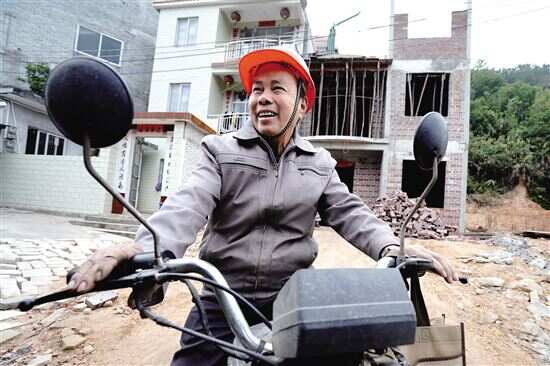 ■大旺村贫困户梁建林也有能力盖三层小楼了,父亲梁木清帮忙照看施工进度。 |