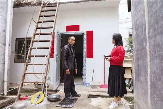 ■河源市江东新区胜利村驻村干部黄诗(右一)到村民家走访。 |