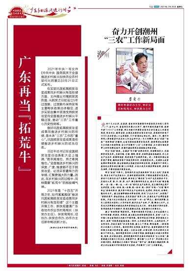 詹自力 潮州市委农办主任、市农业农村局局长、市扶贫办主任 党的十九大以来,在省委、省政府的坚强领导和省扶贫办的悉心指导下,在中山市、省直单位的鼎力支持下,潮州市强化党建引领,按照市委