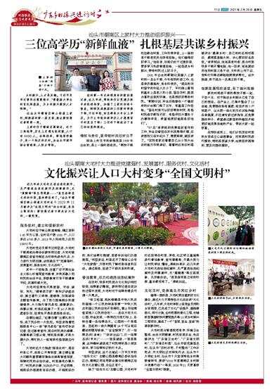 汕头市潮南区上家村大力推动组织振兴—— 乡村振兴,人才是关键。习近平总书记曾作出重要指示:“要鼓励大学生村官扎根基层,为乡村振兴提供人才保障。” 在汕头市潮南区峡山街道上家村,刚换届
