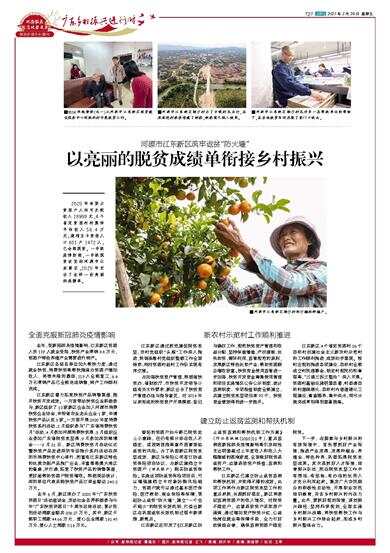 河源市江东新区筑牢返贫“防火墙” 2020年有劳力贫困户人均可支配收入18988元,4个省定贫困村村集体平均收入56.4万元;建档立卡贫困人口601户1472人,已全部脱贫。一手抓疫情防控