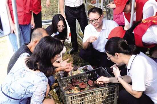 ■刘晓林(右二)听取群众介绍菌菇生长情况。 |