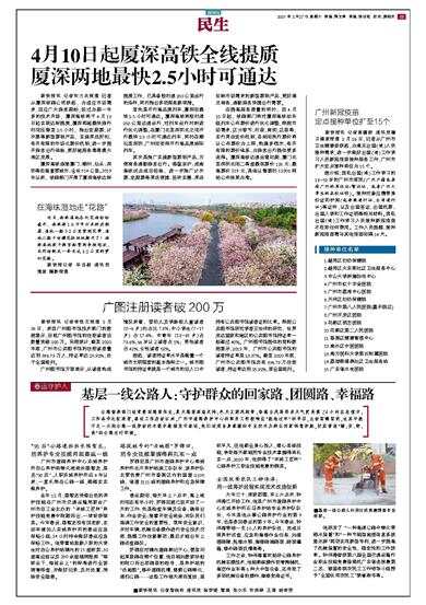 新快报讯 记者许力夫报道 记者从厦深铁路公司获悉,为适应市场需求,回应广大旅客期盼,经过为期一年多的技术升级,厦深高铁将于4月10日起实现达标提质,厦深两地最快旅行时间压缩至2.5小时,推出定期