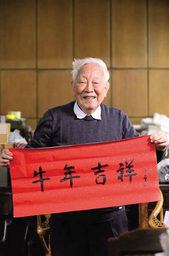 ■陈金章题写祝福语“牛年吉祥”。 |