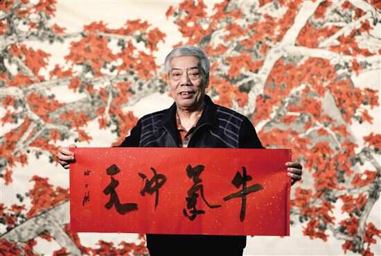 ■陈永锵题写“牛气冲天”贺新春。 |