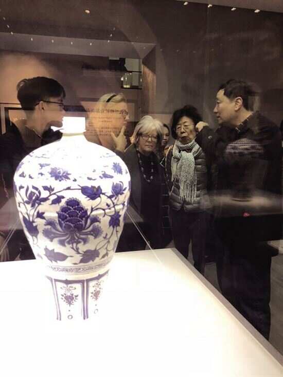 ■景德镇中国陶瓷博物馆,楼钢与德国慕尼黑大学教授讨论中国青花瓷。 |