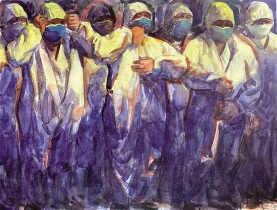 ■陈朝生《没有硝烟的战场》水彩纸本30×40cm×5 中国国家博物馆收藏 |