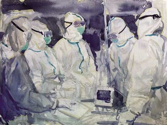 广州美术学院绘画艺术学院副院长、水彩画系主任 应新快报《收藏周刊》的邀请,我挑出多幅作品作筛选,2020年在疫情中创作的《没有硝烟的战场》成为我想跟大家分享的年度新作。在国内抗疫取得阶段性胜利的今天,刊登此画,想必会有它的纪念意义和时代内涵。 去年自疫情发生以来,我与水彩画系师生时刻关注着严峻的疫情防控形势,积极投入到疫情的主题创作中,塑造了一批有感染力的作品,先后发布“以艺战疫”系列推文,举办国内首个专题展览“以艺战疫——广州美术学院水彩画作品展”(莞城美术馆)。《没有硝烟的战场》便是我描绘疫情典型事迹和人物形象的主题作品。 2020年10月,作品在中国国家博物馆展出时我写了以下感言,摘录这里与读者共同致敬不平凡的2020年,亦祝愿新年平安祥和,牛年大吉! 医者的大爱总在那些不经意的时刻,让人泪洒衣襟,以己之力拯救生命直至生命的最后一刻,那是一种对生命无言的致敬。他们用一种最朴实的情怀去理解生命,用“给予”的方式让生命得以延续。《没有硝烟的战场》系列作品是对医者精神的真实呈现;他们的品格与智慧,往往就蕴含在这特别时期的特别绽放之中。我们向守护生命的医者们致敬!向行进在祖国大地上的所有逆行者致敬!